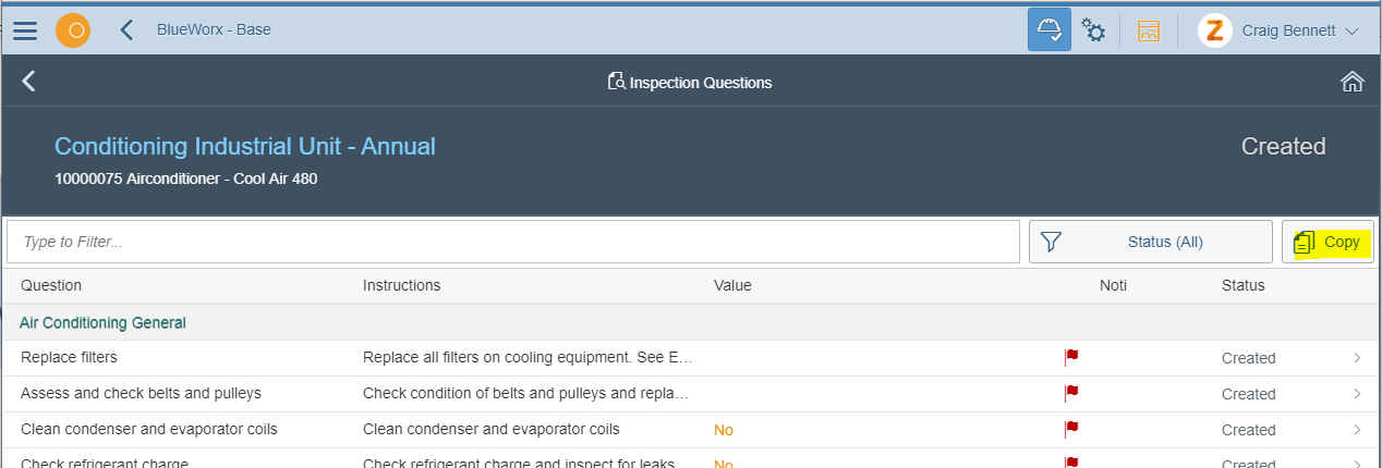 You can now copy and existing Inspection for the same technical object. At the request of a customer, this allows you to undertake multiple inspections against a single Equipment or Functional Location within a Work Order or Equipment or Functional Location sync period.
