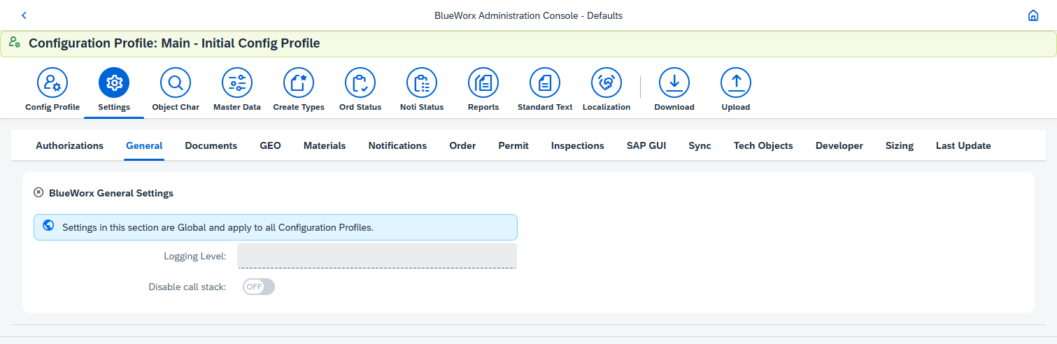 | Disable call stack | This control is used in relation to the logging of ABAP application messages for the applications. When switched on, the log entries no longer show the associated call stack details. | Keeping this switch off will show more detail as to where the message originated from in the ABAP code. |